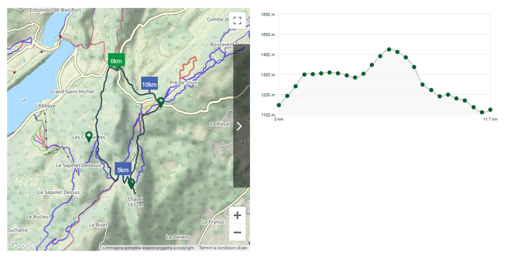 We followed the one that reaches Crox de Chatél. Looking for some nice path on Google I found this long but beautiful ring ( around 14 km). It is not too steepy but quite long and it takes around 5 hours to be completed with, of course lunch and photos break. 🙂