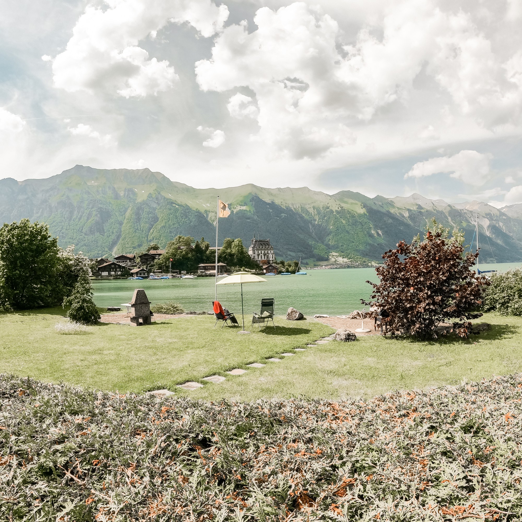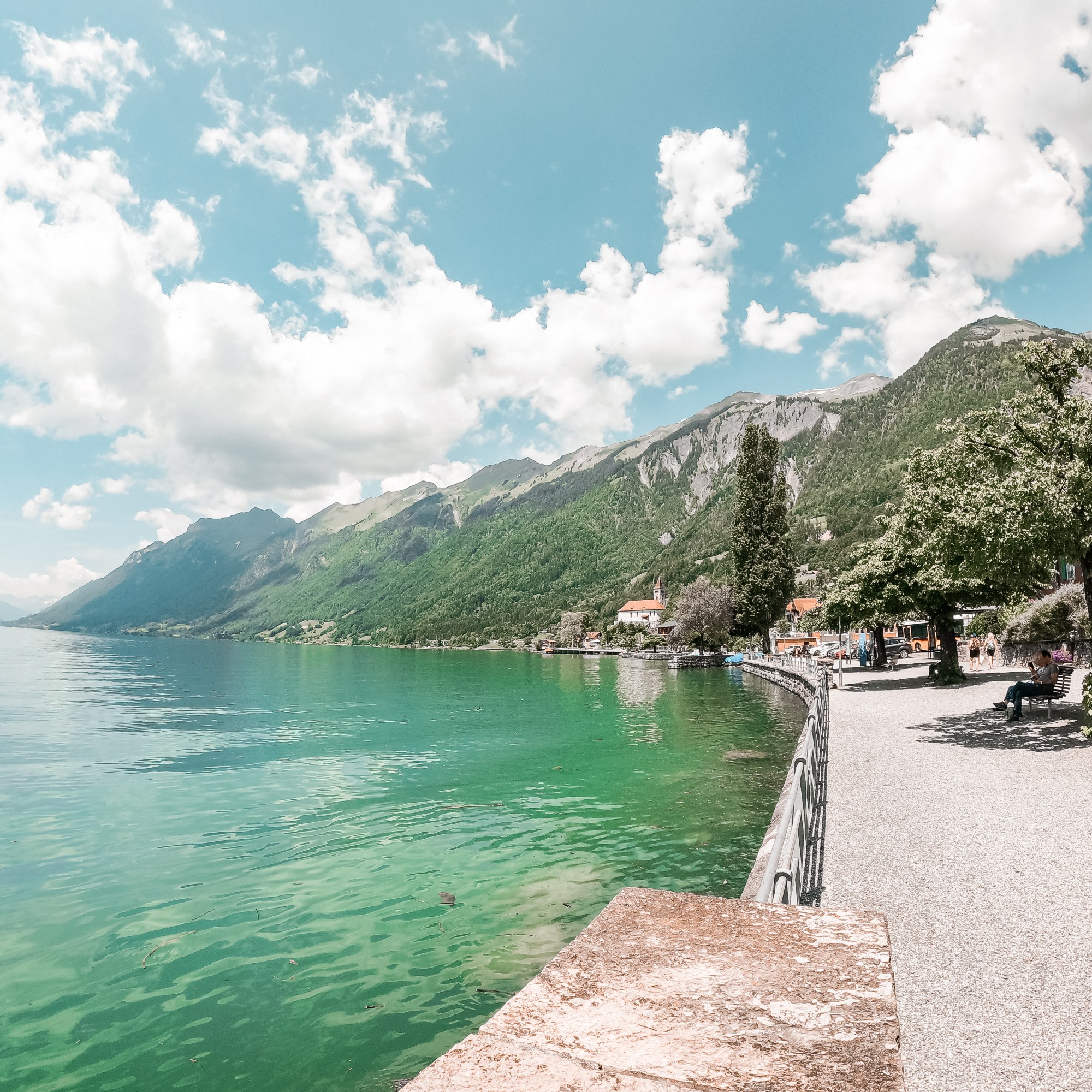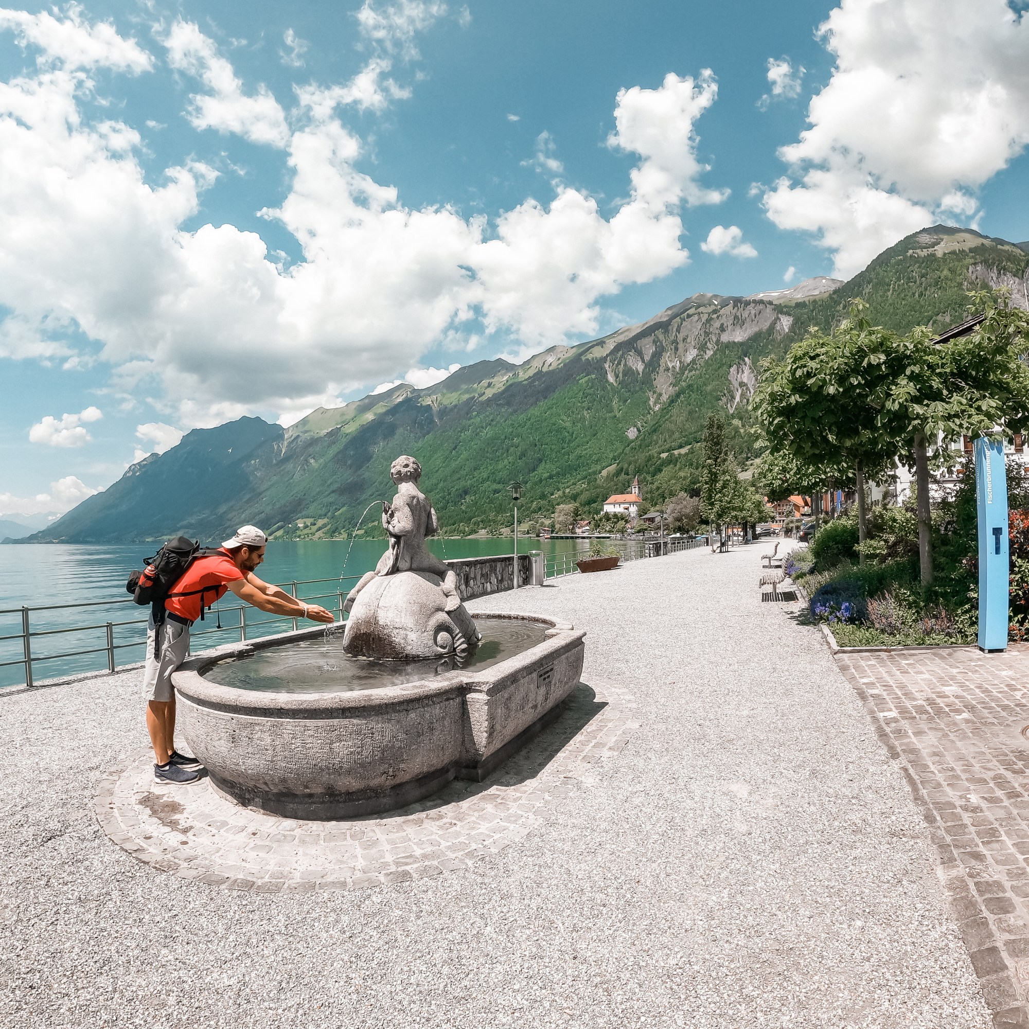First stop is the village of Brienz. It has a nice lake-side walk full of flowers, decoration and an incredible view of the lake and mountains around. Sadly Stefano forgot, ( for the first time in his life ) the camera batteries at home…… But we had the opportonity to use our brand new Gopro Hero 9 to record video and photos 🙂